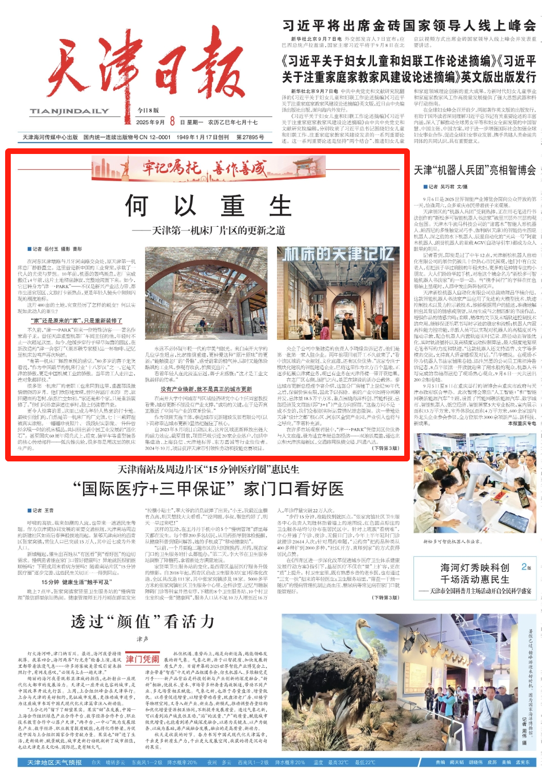 编者按:9月8日,天津第一机床总厂及周边片区城市更新项目登上《天津日报》头版头条,其“重生之道”为城市老旧工业片区改造提供了生动范本。这片曾承载新中国工业荣光的400亩土地,以“原汁原味”更新留住厂房、老树等工业记忆,让老厂区变身“津一·PARK”。它既靠“3+1”产业方向引入近20家企业,激活产业价值;又融入文商旅元素,成为潮流打卡地,实现工业风与烟火气共生。从“工业锈带”到“新兴产业活力带”,天津第一机床厂片区的蜕变,是泰达控股赓续工业文脉、赋能当下发展的典范,也为城市更新如何平衡历史记忆与未来发展,写下了精彩答案。本篇报道是继天津泰达投资控股有限公司(以下简称“泰达控股”)“何以蝶变”“何以焕新”系列深度报道后的第三篇重磅内容,持续聚焦泰达控股赋能区域发展亮点,进一步挖掘优质项目价值,彰显了泰达控股深入践行“三新”“三量”发展要求的实践成效,为提升泰达品牌影响力注入了强劲动能。在河东区津塘路与月牙河南路交会处,原天津第一机床总厂静静矗立。这里曾是新中国的工业脊梁,承载了一代人的光荣与梦想。10年前,机器的轰鸣渐息,老厂完成搬迁;4年前,这片土地彻底静寂,完整地闲置下来。如今,它已转身为“津一·PARK”——不仅是新兴产业活力带、都市生活宜居区、文旅打卡新热点,更是年轻人镜头中频频闪现的潮流地标。这片400亩的土地,究竟经历了怎样的蜕变?何以实现如此动人的重生?“家”还是原来的“家”,只是重新装修了