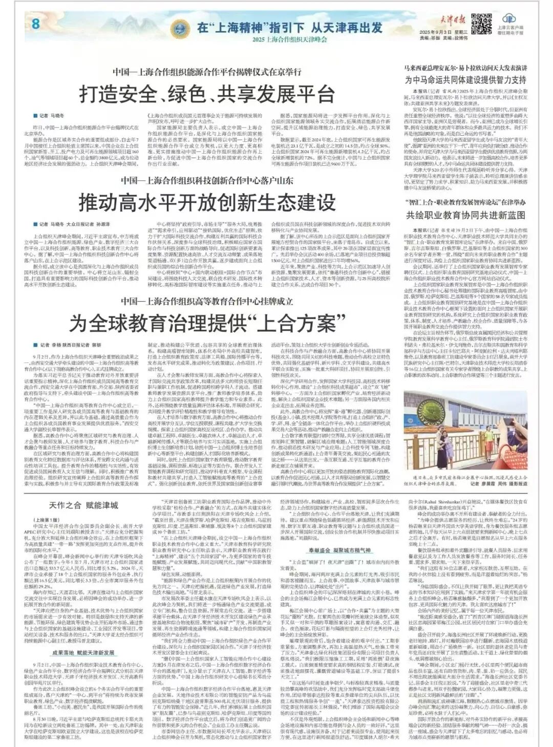 9月8日,市委书记陈敏尔,市委副书记、市长张工调研中国—上海合作组织绿色产业合作平台、数字经济合作平台、职业技术教育合作中心。陈敏尔强调,要深入学习贯彻习近平总书记在2025年上海合作组织峰会期间发表的一系列重要讲话精神,建好用好合作平台、合作中心,持续深化与上合组织国家交流合作,推动上合组织天津峰会成果落地生根、开花结果,更好服务上合组织高质量发展、服务国家总体外交大局。陈敏尔、张工先后来到天津子牙经济技术开发区、天开高教科创园华苑片区数字经济产业园、天津职业技术师范大学,听取中国—上海合作组织绿色产业合作平台、数字经济合作平台、职业技术教育合作中心整体情况和下一步重点工作介绍,了解平台、中心筹建和服务上合组织绿色产业、数字经济、职业教育合作与发展情况,并察看天津职业技术师范大学国家级工程实训中心,调研学校开展技能教育和特色人才培养等工作,与有关负责人、师生深入交流。陈敏尔在调研中指出,习近平总书记在2025年上海合作组织峰会上宣布,中方将成立中国—上合组织能源、绿色产业、数字经济三大合作平台,以及科技创新、高等教育、职业技术教育三大合作中心。这是上合组织天津峰会的重要成果。中国—上海合作组织绿色产业合作平台、数字经济合作平台、职业技术教育合作中心落地我市,是以习近平同志为核心的党中央交给我们的重要任务,为推动天津高质量发展和高水平对外开放提供了重要机遇。要深学深用习近平总书记在2025年上海合作组织峰会期间发表的一系列重要讲话精神,进一步提高政治站位,以强烈的责任感和使命感,全力抓好合作平台、合作中心建设运行,加强与中央和国家有关部门沟通对接,提升上合组织国家参与度,为促进上合组织国家交流交往、实现互利共赢贡献力量。陈敏尔强调,要充分发挥自身特色优势,利用现有载体,吸引更多优质资源,更好地盘活存量、做优增量,切实把峰会成果转化为发展成果、合作成果。建好用好中国—上海合作组织绿色产业合作平台,依托天津子牙经济技术开发区,建立上合组织国家各界广泛参与的绿色产业合作机制,运用市场化手段,面向国内国际,引育更多企业和项目,加快构建绿色低碳循环经济体系,培育和发展新质生产力。建好用好数字经济合作平台,发挥滨海新区产业基础优势、天津港保税区政策优势、天开高教科创园科技研发优势,深化制度创新,进一步集聚数据要素资源,打造数字经济生态圈,支持算力、云服务、人工智能等优势企业“走出去”,与上合组织国家开展多层次合作。建好用好职业技术教育合作中心,立足国家所需,尽天津所能,巩固拓展我市职业技术教育发展成果,进一步擦亮鲁班工坊品牌,推动职业技能与人工智能双向赋能,加强职业教育国际合作,促进上合组织国家产教融合纵深发展,培养更多高素质技术技能人才。